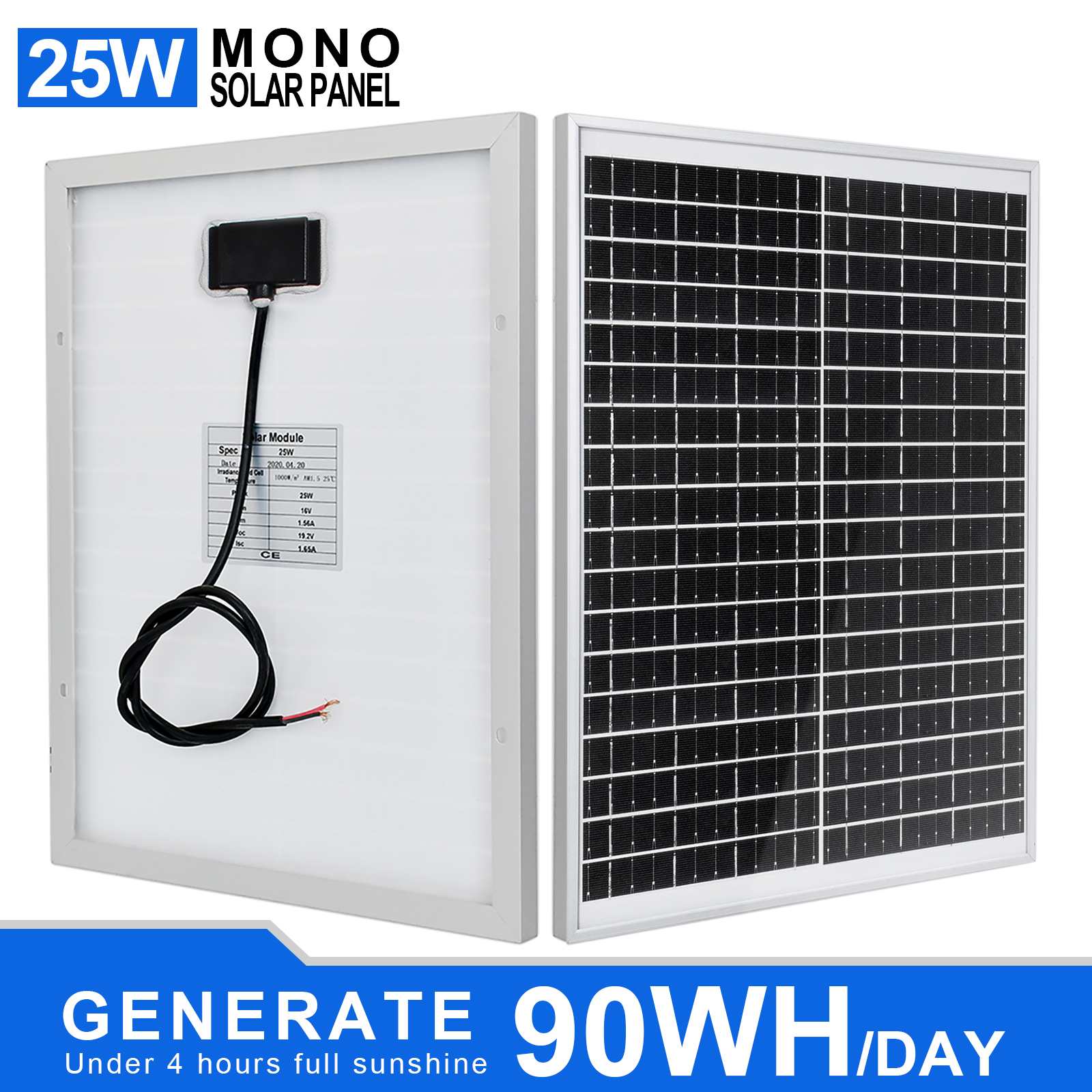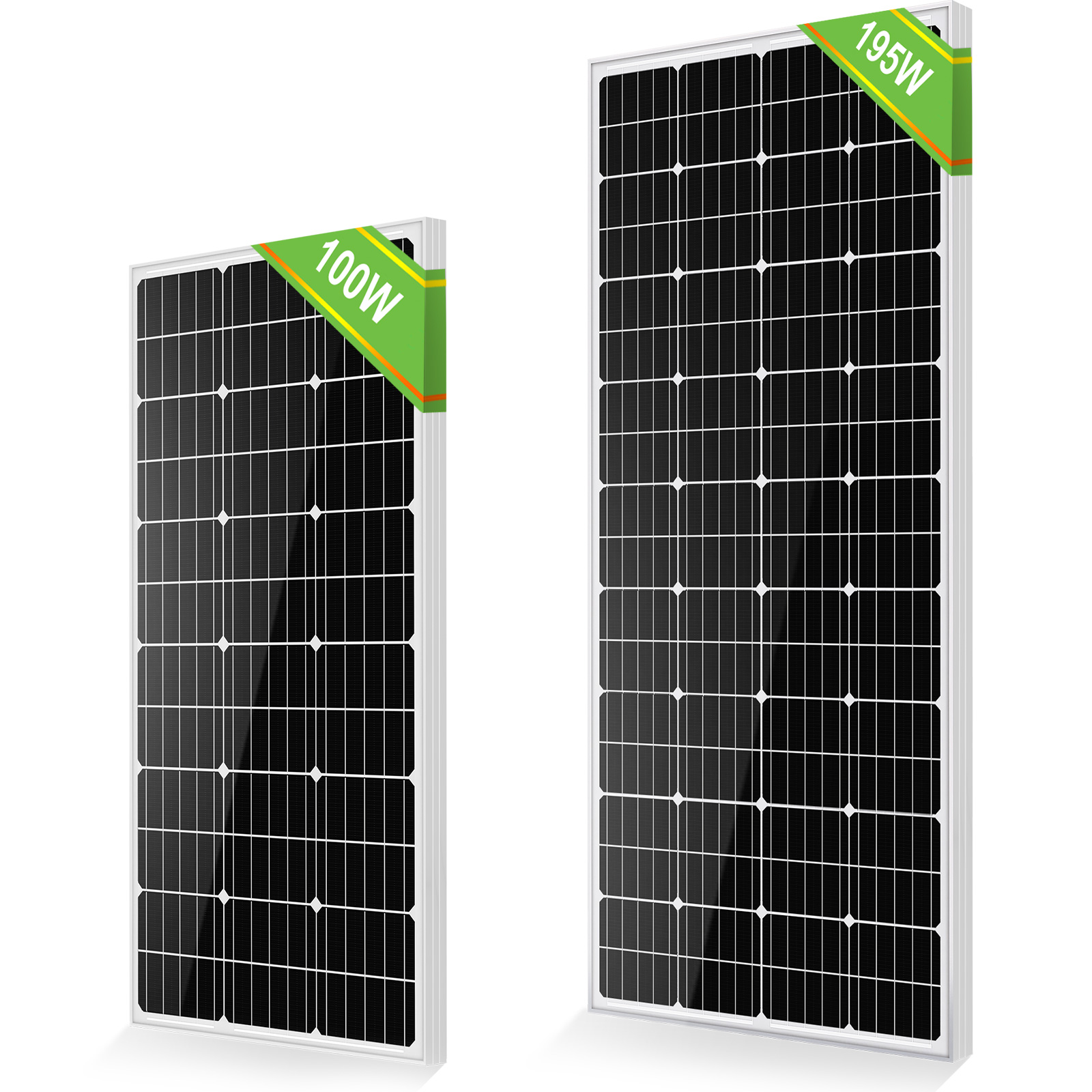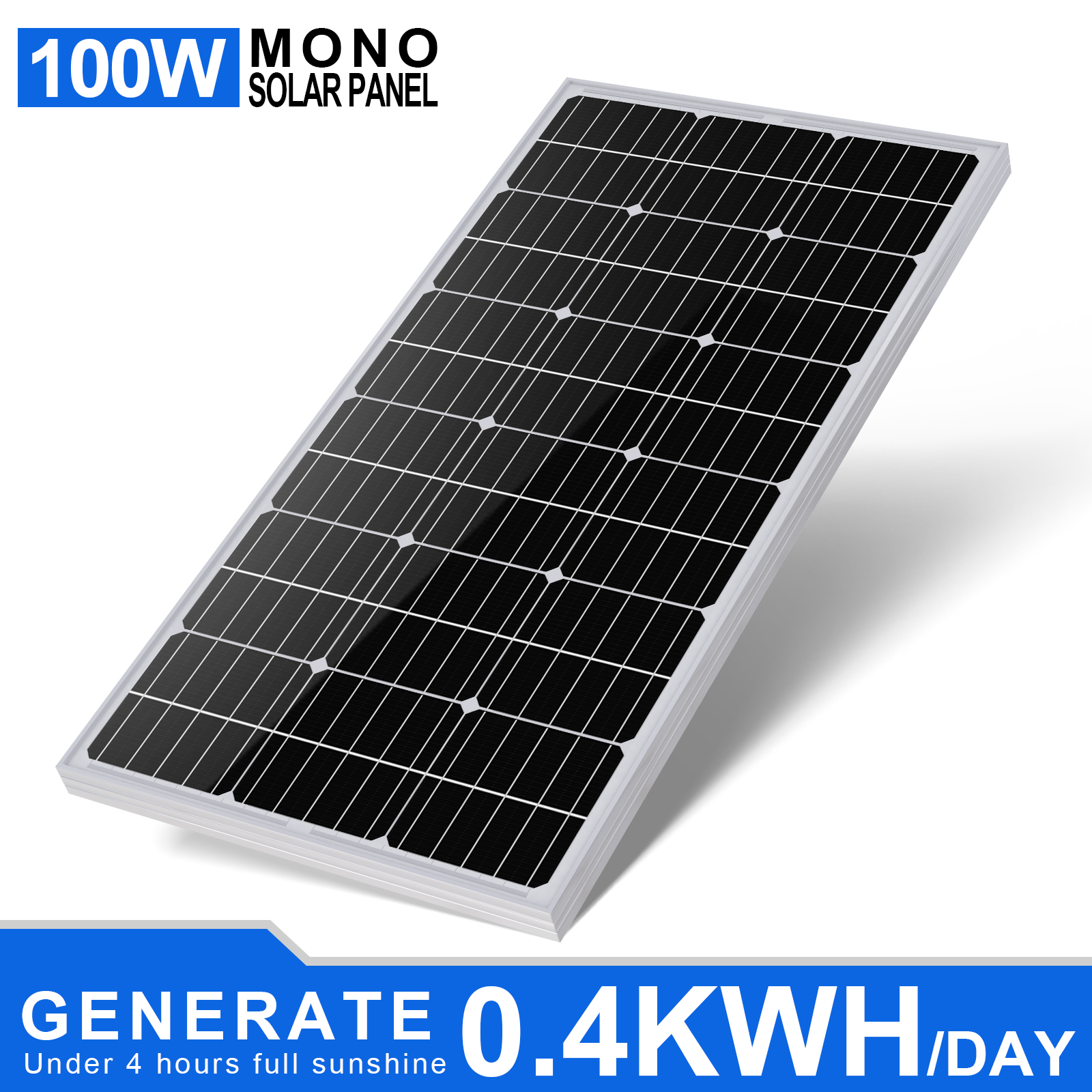 ECO-WORTHY this 100W 12V Monocrystalline Solar Panel is primarily used on off-grid situations that include RV, boat, sailboat, yacht, truck, cabin, camper, tent, trailer, golf cart. Each solar panel comes with a pair of 35 inches cables. By-pass diodes are pre-installed in waterproof IP-65 rated junction box to minimize power drop caused by shade and ensure excellent performance in low-light environments. Withstand high wind (2400Pa) and snow loads (5400Pa), the surface is made up of 3.2mm low Iron glass, the monocrystalline modules are framed by 35mm width aluminum alloy, which is 2~5mm wider than the other's.