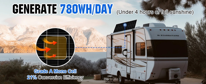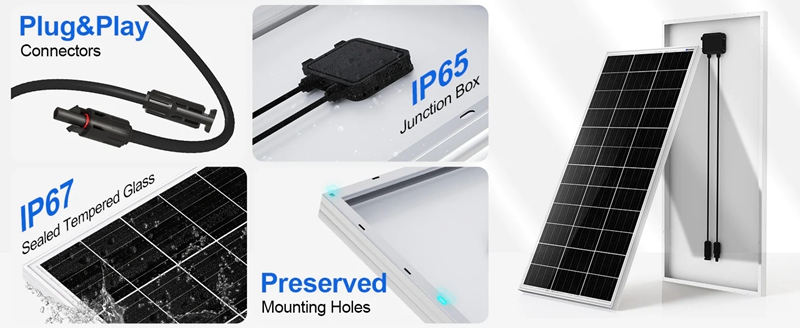 ·Versatile: Monocrystalline solar panels are used on off-grid situations that include RV, boat, sailboat, yacht, truck, cabin, camper, tent, trailer, golf cart.