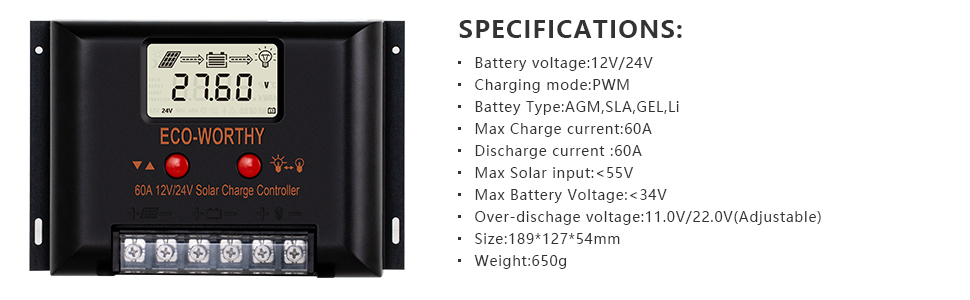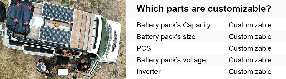 The lithium battery has a built-in Battery Management System (BMS) that can protect it from overcharging, deep discharge, overload, overheating and short circuit, and low self-discharge rate. Can be used in parallel, more suitable for 24V solar panel kit, less wires, less heat loss and less balance issue.