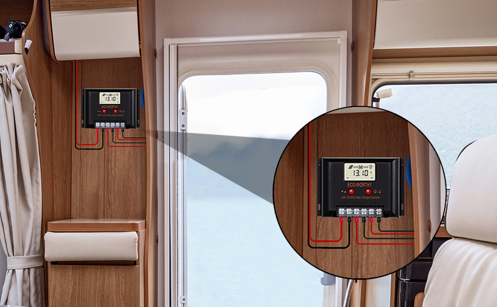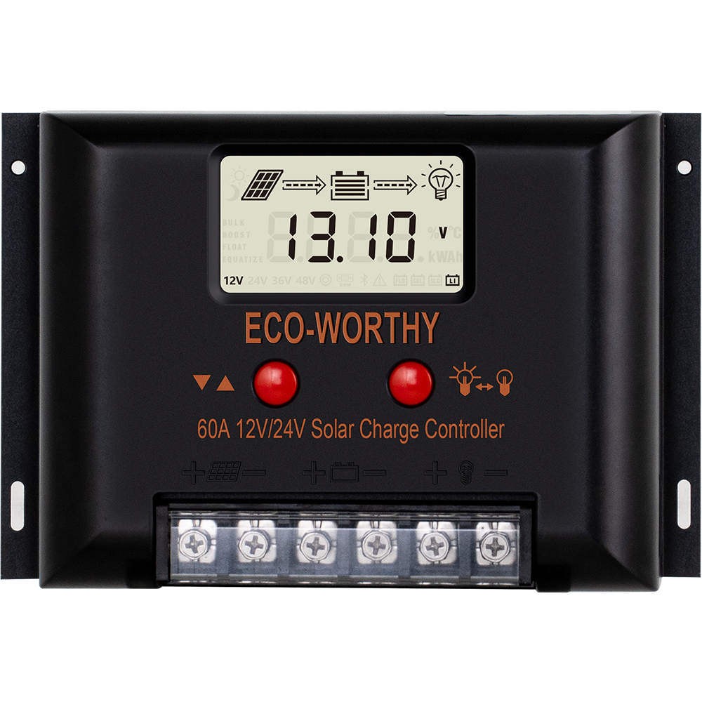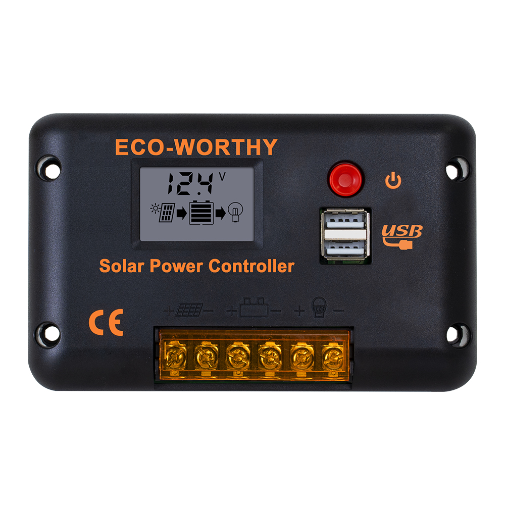 ECO-WORTHY solar controller has short-circuit protection, open-circuit protection,reverse protection, over-load protection. Fully 3-stage PWM charge management, improve system efficiency and prolong the life span of the battery